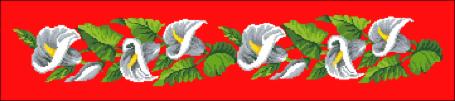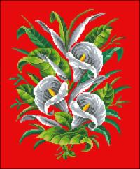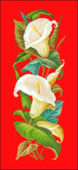 This 1850s pattern of Calla Lillies comes from a finished work in the seller's collection and is comprised of 13 DMC colors. The design shown is 56 stitches wide by 341 stitches tall for two pattern. The design can be lengthened to any length as desisred.