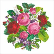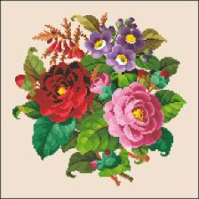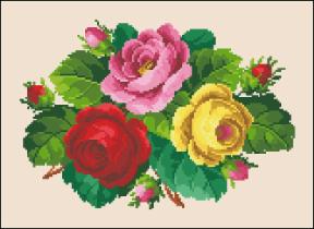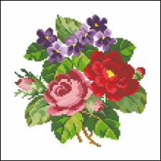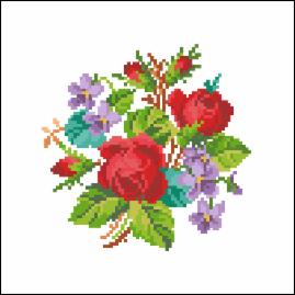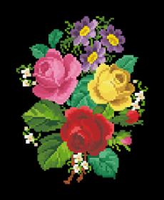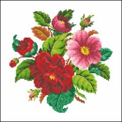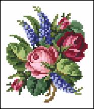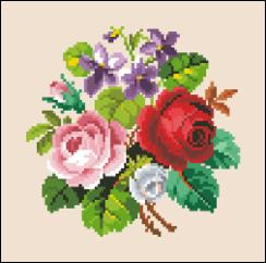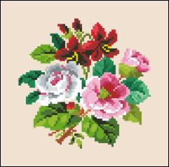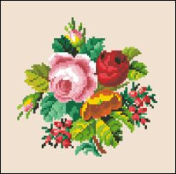 WILD ROSE BOUQUET 3 $5 USDThis 1870s German pattern comes from the seller's collection and is comprised of 28 DMC colors to get the exact shading. The finished design is 88 stitches wide by 105 stitches tall.