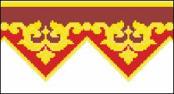 This 1870s pattern of a Pelmet or Shelf/mantel edge comes from the seller's collection. Comprised of 15 DMC colors it is 241 stitches wide by 110 stitches tall. The pattern called for the scalloped edging to be outlined with matching gold fringe.