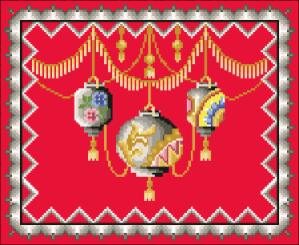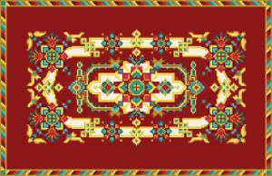 This pattern is from a period magazine dated 1873. The pattern was to be used as a cushion cover, chairseat, travelling bag or carpet runner. Made up of 8 DMC colors the pattern is 109 stitches wide and 62 stitches tall, which can be expanded in either direction.