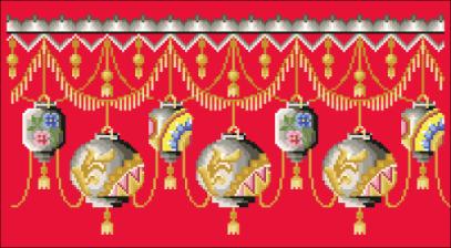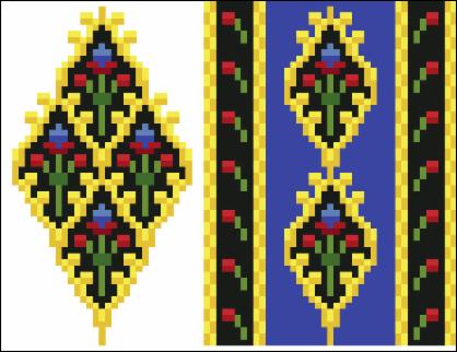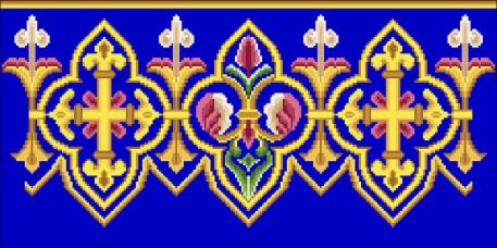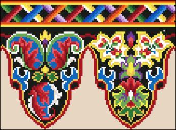 The coordinating pattern to the cushion, it apparently came from the same designer in the 1880s. This heavy work graced the archway in a victorian home, before it became part of the seller's collection. Like it's companion, it is entirely made up of beadwork. The pattern shows one repeat, but could be made into any desired length. Comprised of 22 DMC colors and is 197 stitches wide by 98 stitches tall.