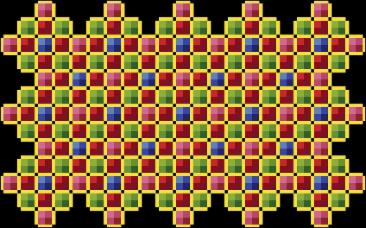 This 1872 pattern comes from the seller's collection and was called Tartan Squares from an English lady's magazine of the time. Made up of tiny blocks of 3 shades of a color, surrounded by lemon yellow silk, this pattern could be changed to any color combination or to use up odd scraps. The original design was for a footstool but is suitable for any shape. Comprised of 13 DMC colors the design shown is 106 stitches wide by 66 stitches tall.
