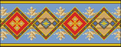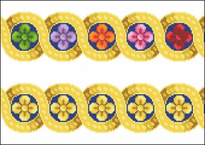 This pattern was created at the request of a customer to match an existing color scheme. While it is the same stitch size as the above pattern at 119 stitches wide by 11 stitches tall, the colors were increased to 22 DMC shades to account for the new color scheme.