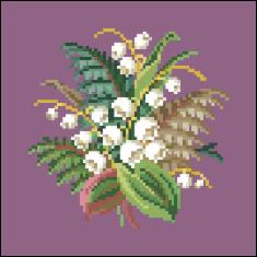 This circa 1860's pattern of Roses, Lilly of the Valley and Violets comes from a finished work in the seller's collection. Originally done on a black background, the Lilly of the Valley was completed in beadwork, the Violets in silkwork and the Roses in woolwork. The colors were obtained from the reverse side as it was not protected by glass and had faded over the years. Comprised of 46 DMC colors it is 180 stitches in both directions.