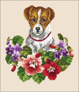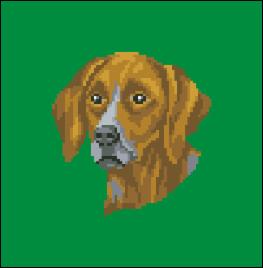 This 1860s small beadwork pattern comes from a finished work in the seller's collection. This was the inset of a Victorian Hat Rack and the figure of the dog was completely executed in beads on a red background of wool. Made up of 12 DMC colors, it is 70 stitches wide by 52 stitches tall