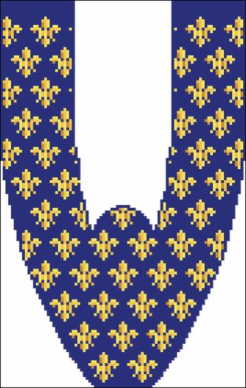 This 1860s pattern was created to coincide with the indoctrination of Queen Victoria's son as the Prince of Wales. Made up of 19 DMC colors on a rich chocolate ground, it is 99 stitches wide by 99 stitches tall, and could be expanded to any size. A nice addition would to include your family's initials on either side of the feathers.