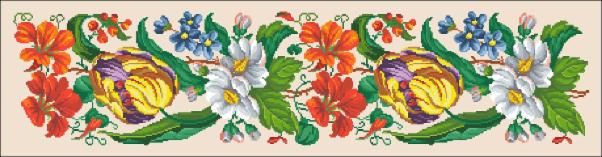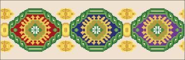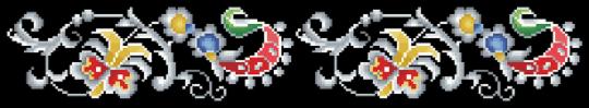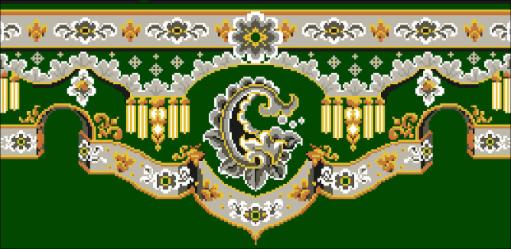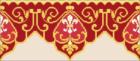 The coordinating pattern to the cushion, it apparently came from the same designer in the 1880s. This heavy work graced the archway in a victorian home, before it became part of the seller's collection. Like it's companion, it is entirely made up of beadwork. The pattern shows one repeat, but could be made into any desired length. Comprised of 22 DMC colors and is 197 stitches wide by 98 stitches tall.
