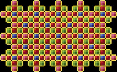 This 1872 pattern comes from the seller's collection and was called Tartan Squares from an English lady's magazine of the time. Made up of tiny blocks of 3 shades of a color, surrounded by lemon yellow silk, this pattern could be changed to any color combination or to use up odd scraps. The original design was for a footstool but is suitable for any shape. Comprised of 13 DMC colors the design shown is 106 stitches wide by 66 stitches tall.