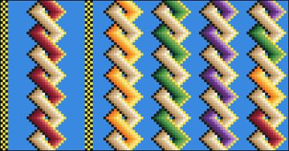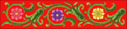 This pattern was created at the request of a customer to match an existing color scheme. While it is the same stitch size as the above pattern at 119 stitches wide by 11 stitches tall, the colors were increased to 22 DMC shades to account for the new color scheme.