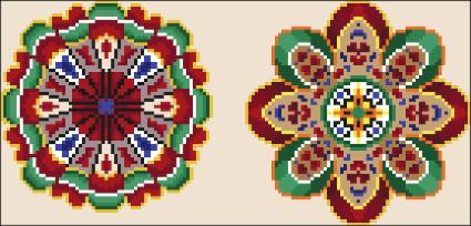 This 1860s English pattern of interlocking ribbons and rosettes, comes from a finished work in the seller's collection and is comprised of 25 DMC colors for the multi colored band and 5 DMC colors for the monochromatic band. Both patterns are sent with the order. The individual design is 41 stitches wide by 41 stitches tall for one pattern. The design shown is made up of six patterns and can be increased to any length as desisred.