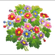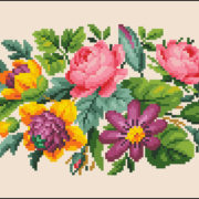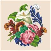Set in an oval frame, this French Rose bouquet was part of a small packet was also showed alphabet designs. While attributed to Sajou, it is unmarked. The design is 120 stitches wide by 117 stitches tall including the oval and uses 38 DMC colors.