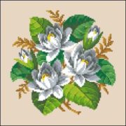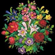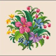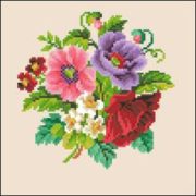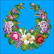 This late 1860s, early 1870s, Berlin Wool Work pattern was given as a free design from the French Magazine- “Journal Des Dames et Des Demoiselles”. The original was shown in rose colors, but this is done in the more prevalent Blue. The pattern uses 37 DMC colors and is almost square at 201 stitches wide by 208 stitches tall. On the original design, was the outline for a chair seat, but it could be easily used for a picture or pillow as well.